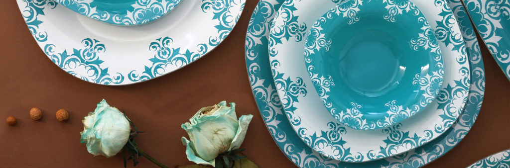 Our exquisite service set introduces a pop of color to your tabletop.