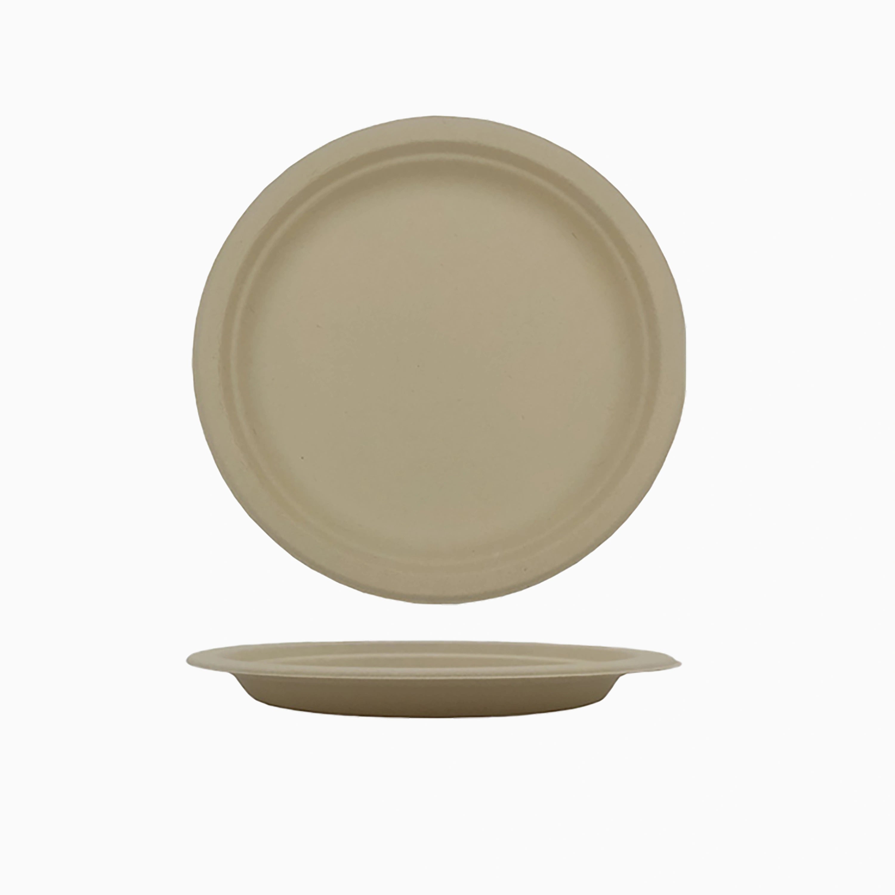 This collection of round disposable plates is a comprehensive and sustainable solution for food service in restaurants, catering companies, and large events. Made from 100% sugarcane fiber (bagasse), these plates are an excellent alternative to plastic and provide the durability and functionality required for high-traffic commercial environments. This collection is perfect for serving any meal, from hot and oily foods to cold appetizers.